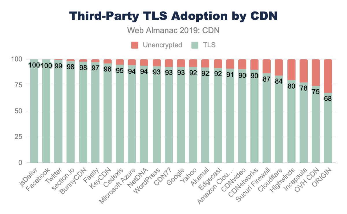 As the web continues to evolve, CDN vendors innovate, and sites use new practices CDN adoption remains an area rich for further research in future editions of the Web Almanac.