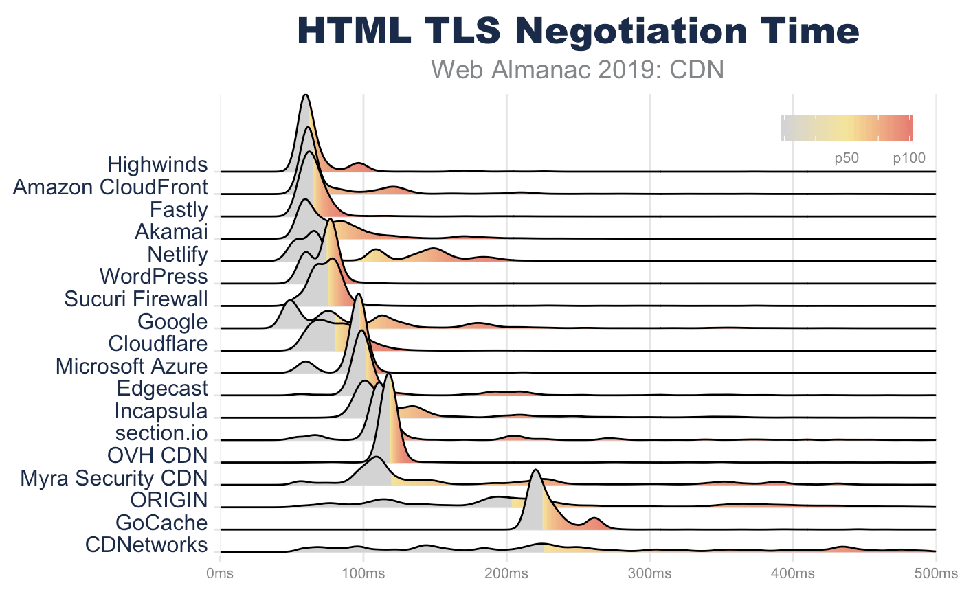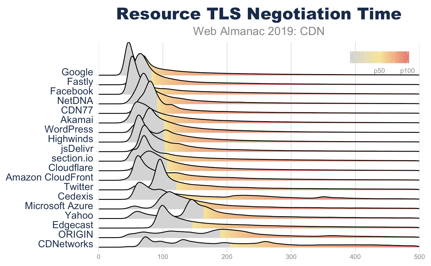 In future versions of the Web Almanac, we would expect to look more closely at the TLS and RTT management between CDN vendors. Of interest would the impact of OCSP stapling, differences in TLS Cipher performance. CWND (TCP congestion window) growth rate, and specifically the adoption of BBR v1, v2, and traditional TCP Cubic.