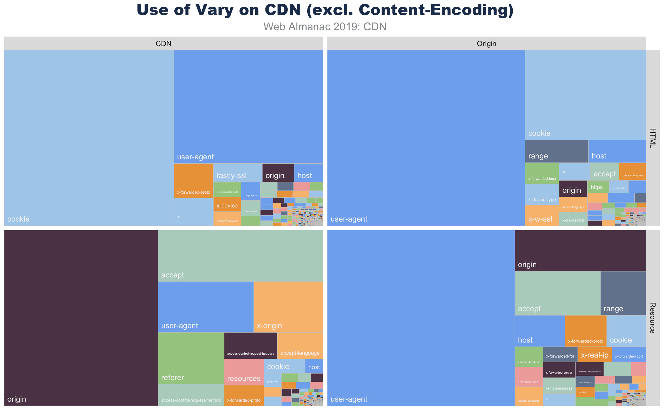 Figure 17.25. Comparison of Vary usage for HTML and resources served from origin and CDN.