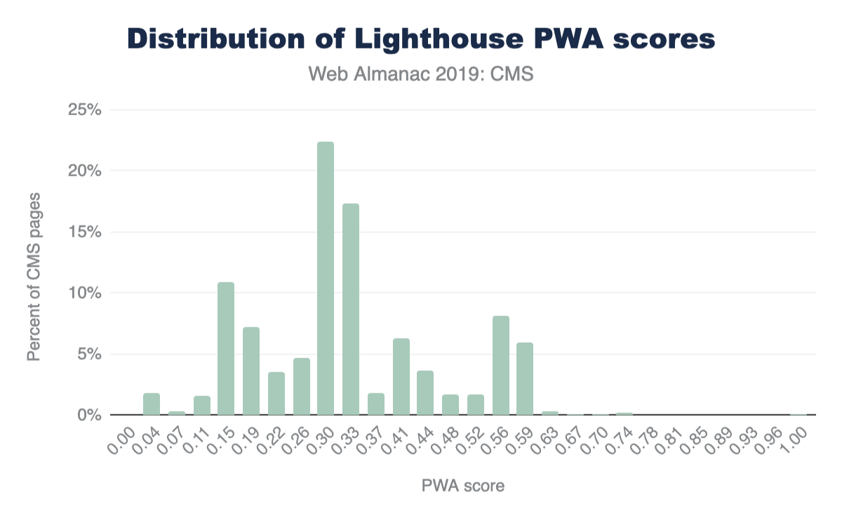 Distribution of Lighthouse PWA category scores for CMS pages.
