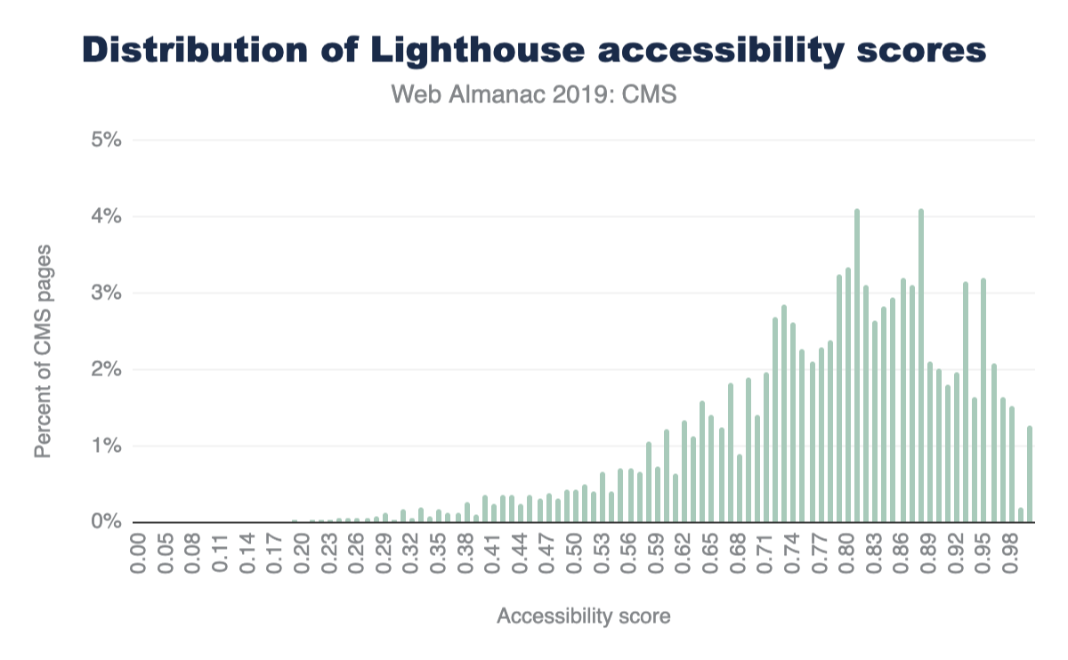 Figure 14.22. Distribution of Lighthouse accessibility category scores for CMS pages.
